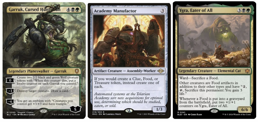 P: Si tengo un Garruk, Academy Manufactor, y a Ygra, en campo, y creo por ejemplo tokens con Garruk, ¿se activa el efecto de Academy manufactor, al ser fichas criatura comida por Ygra?